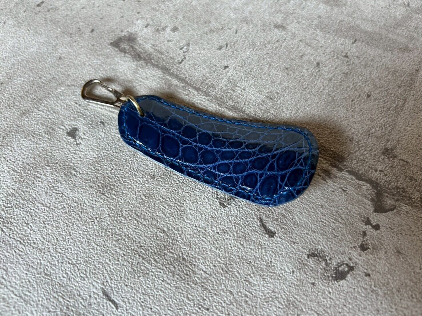 美しさと機能性を兼ね備えたこの靴べらは、最高級のクロコダイル革が持つ独特の質感と光沢が魅力です。
