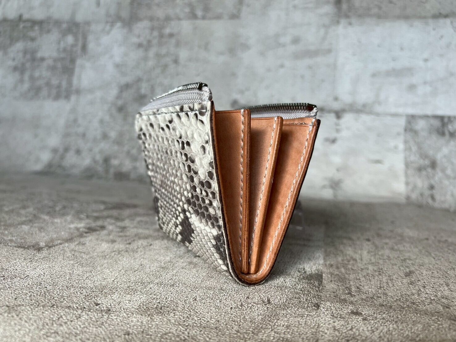 L字ファスナーミニ ワイド ヘビ革(ダイヤモンドパイソン)