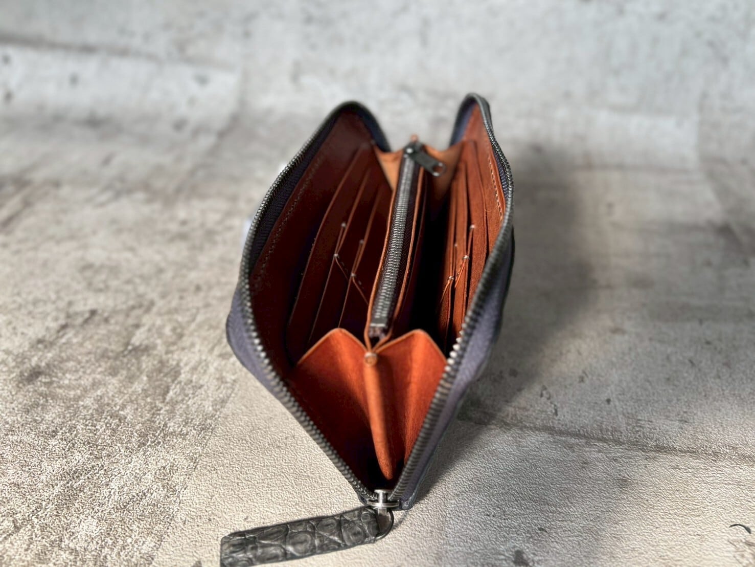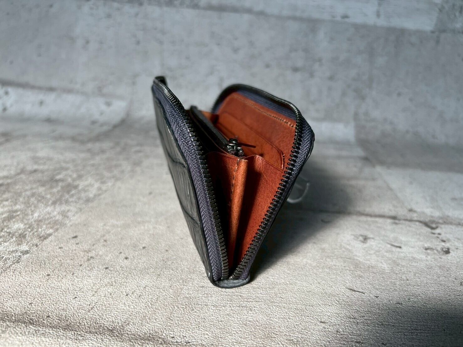 本体外側:クロコダイル(ポロサス)墨染め
