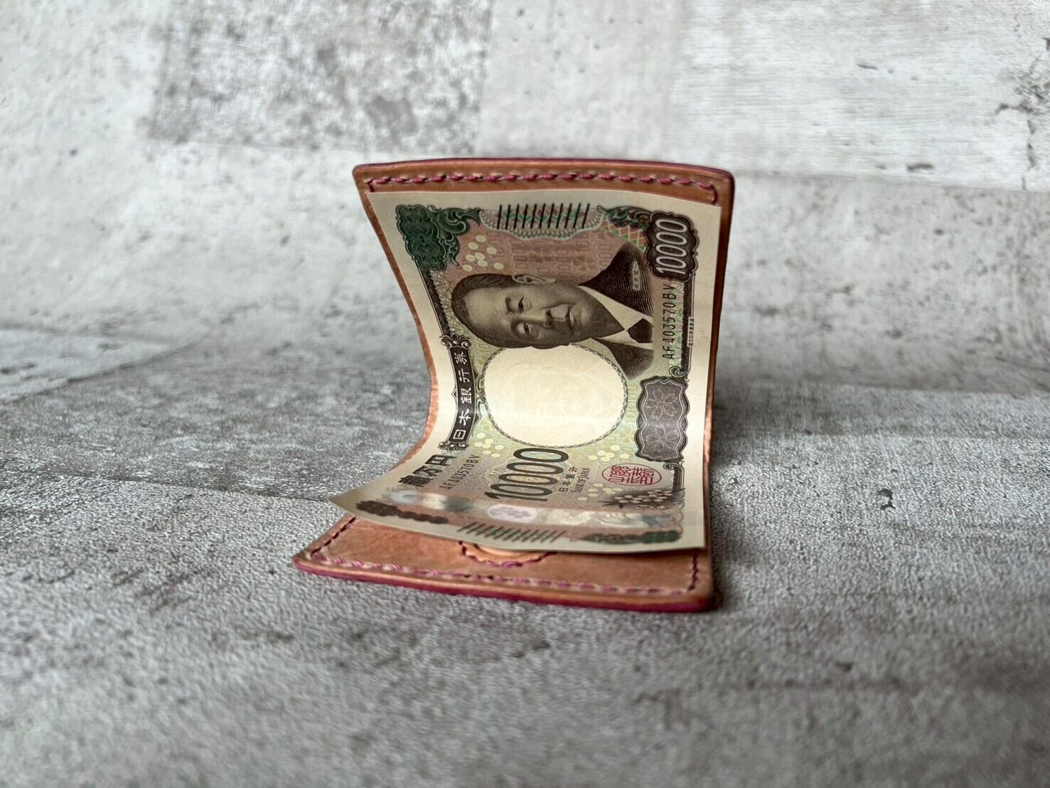 マグネット式でお札をホールドするシンプルなマネークリップです。