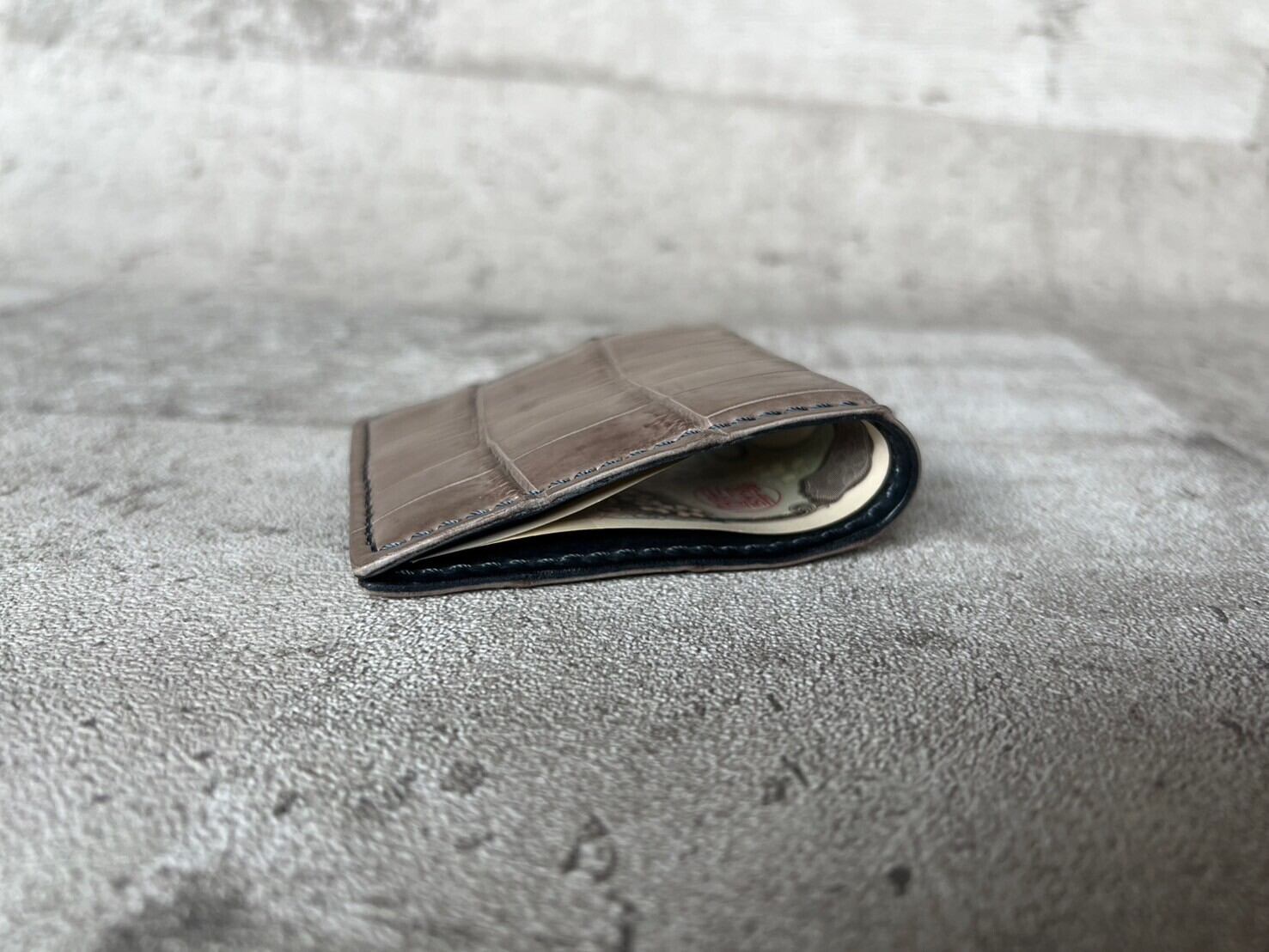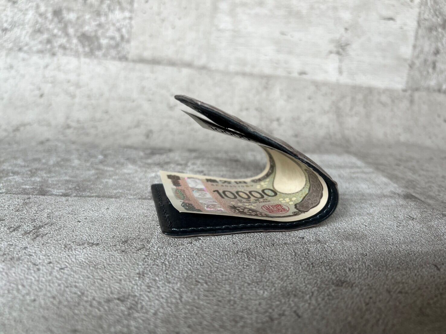 マグネット式でお札をホールドするシンプルなマネークリップです。