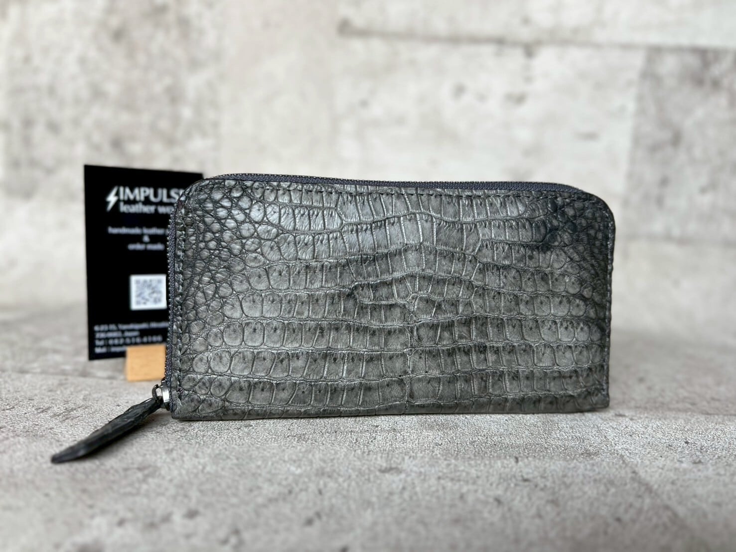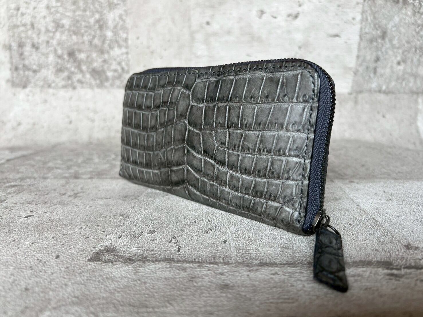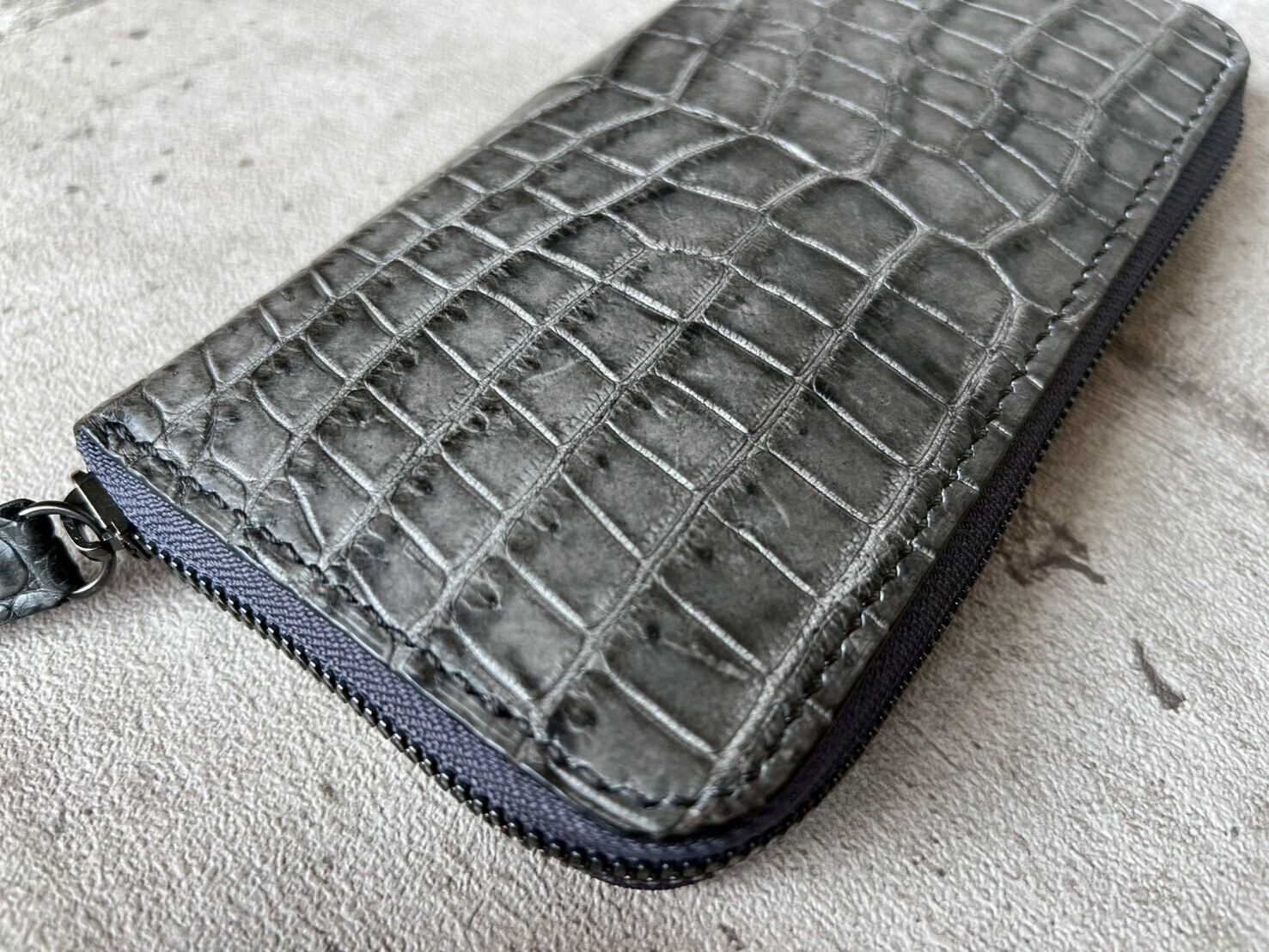 外装には、存在感抜群のクロコダイル(ポロサス)墨染めを贅沢に使用。