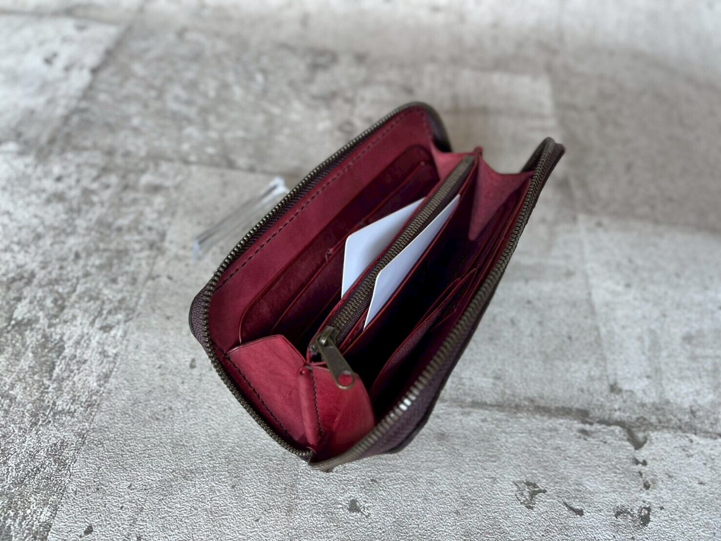 内装は、上質な国産の牛ヌメ革を使用し、時間と共に深まるエイジングも楽しめます。