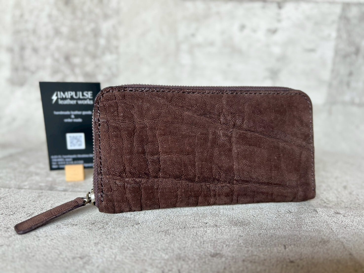 小型ラウンドファスナー~Bambinoバンビーノ~ ゾウ革 ブラウン