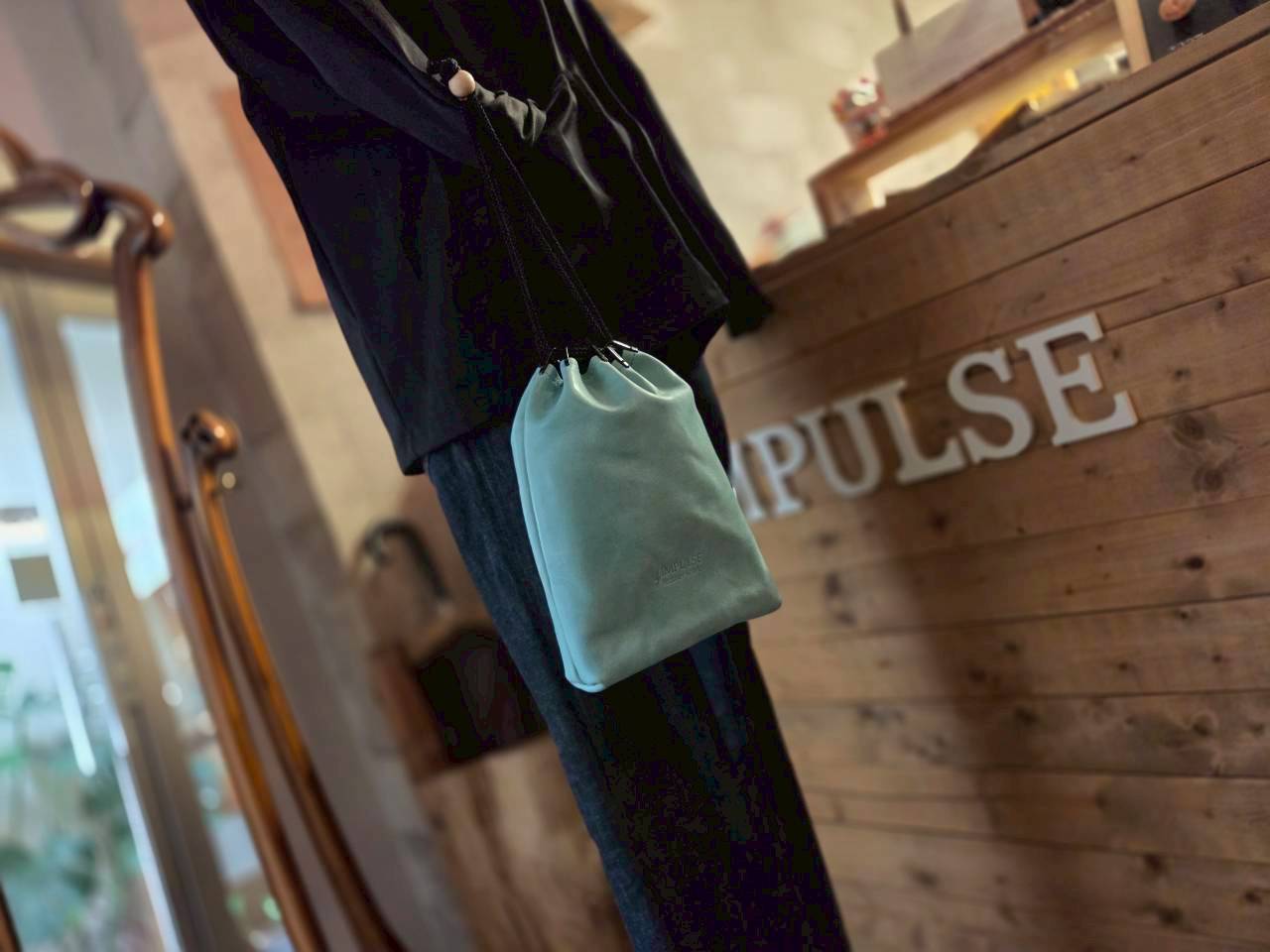 見た目のがお洒落なだけでなく、スッと引っ張るだけで間口が大きく開き、ひもをグッと絞るだけで簡単に閉まります。