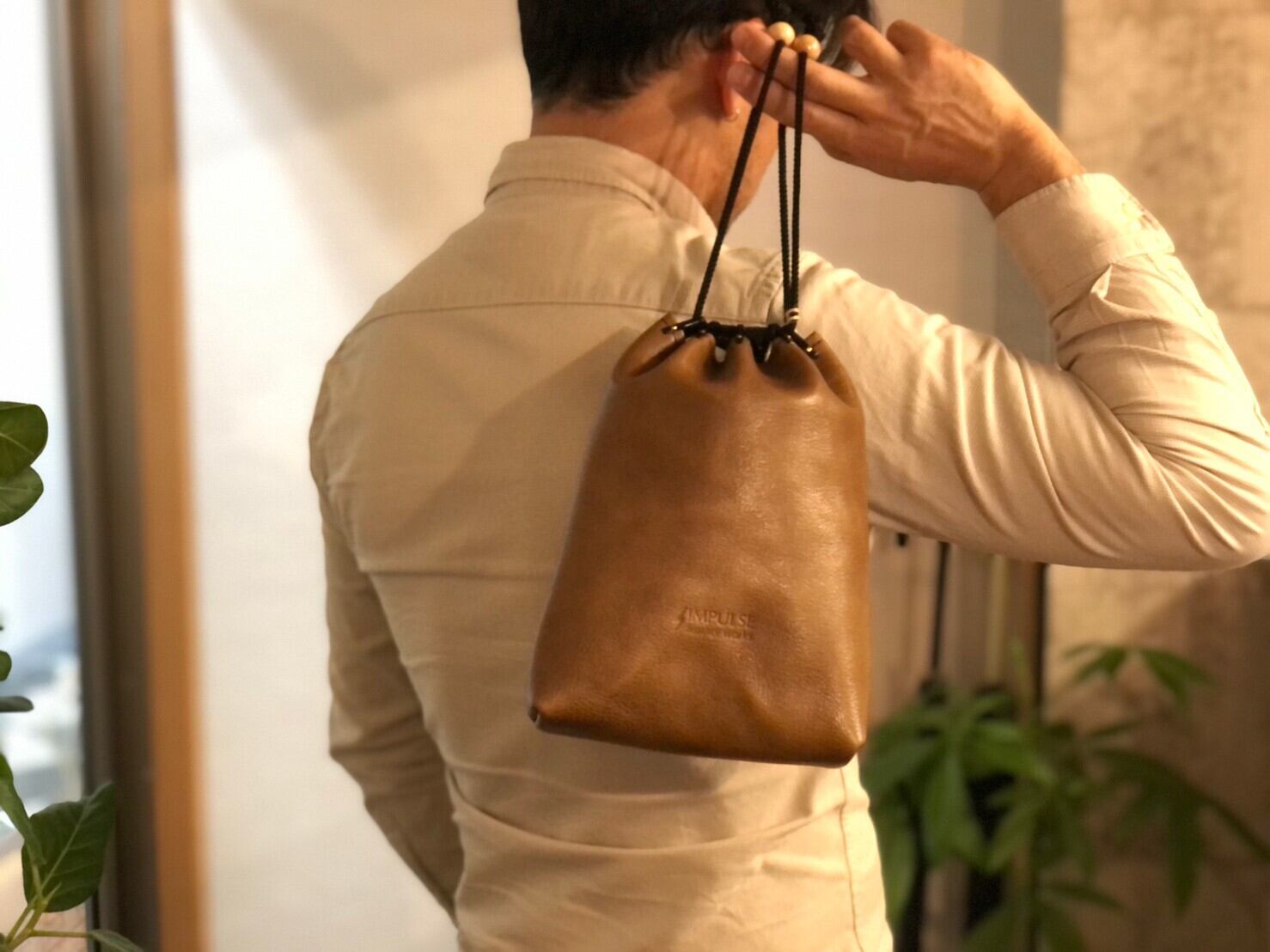 見た目のがお洒落なだけでなく、スッと引っ張るだけで間口が大きく開き、ひもをグッと絞るだけで簡単に閉まります。