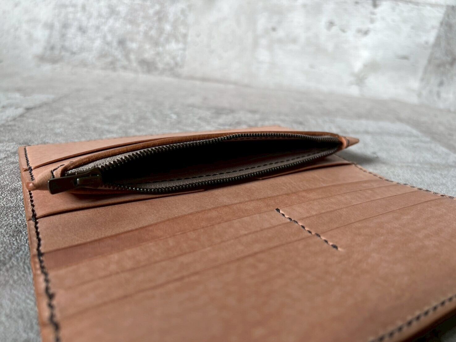 スマートに仕上げるため小銭入れにマチは付いていませんが、アコーディオン式になっているためしっかりと開きます。