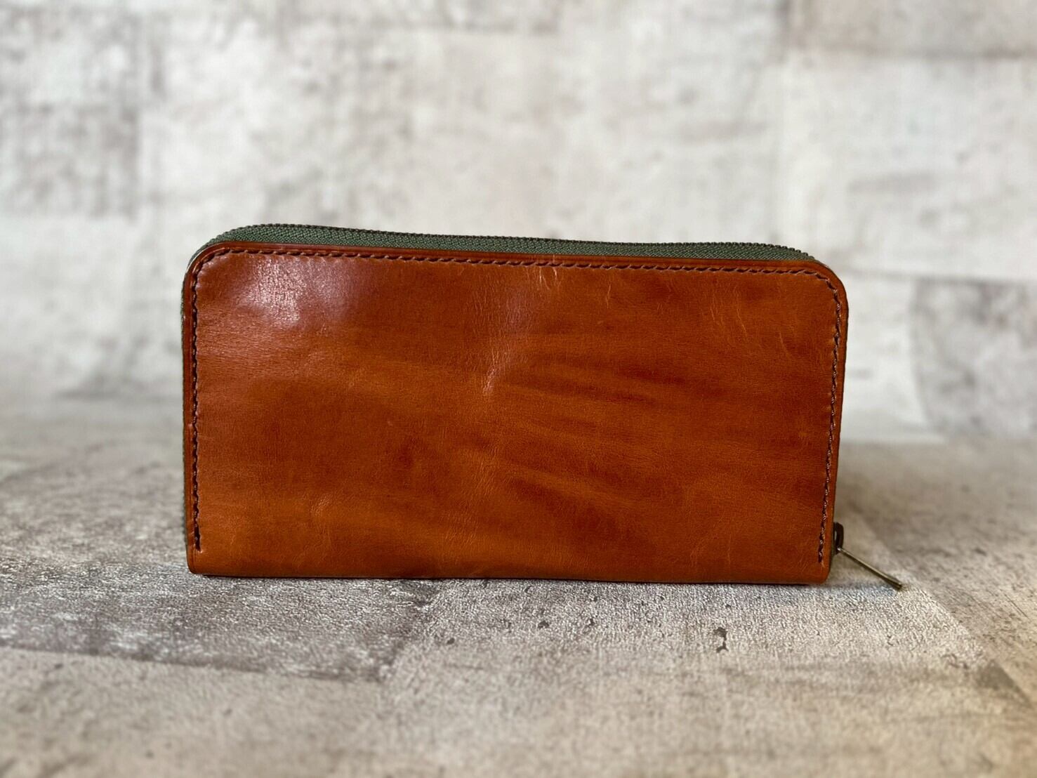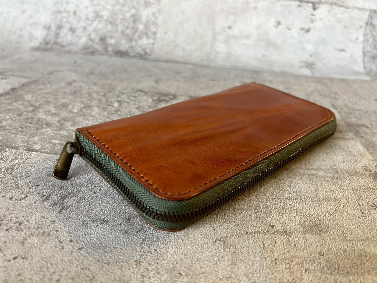 ラウンドファスナー 牛ヌメ革しぼり加工 ブラウン