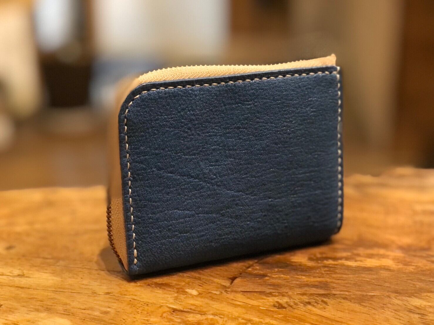 L字ファスナーミニ 広島産ジビエレザー(シカ革) サックスブルー